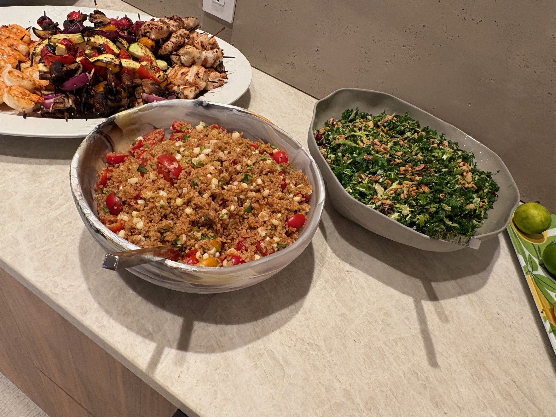 Shifting to Saturday, we set-up shop in Dewey and Frankford. Our Dewey date was with one of our regular and favorite clients, who were hosting a weekend grill night with Tomahawk and Ribeye steaks, fresh Veggie, Jumbo Shrimp and Chicken kebobs, Quinoa and corn salad, Kale and Brussels sprout salad and a noshing station of Tuna Tartare, Guacamole, House made Hummus and Salsa with chips and Shrimp Cocktail.
