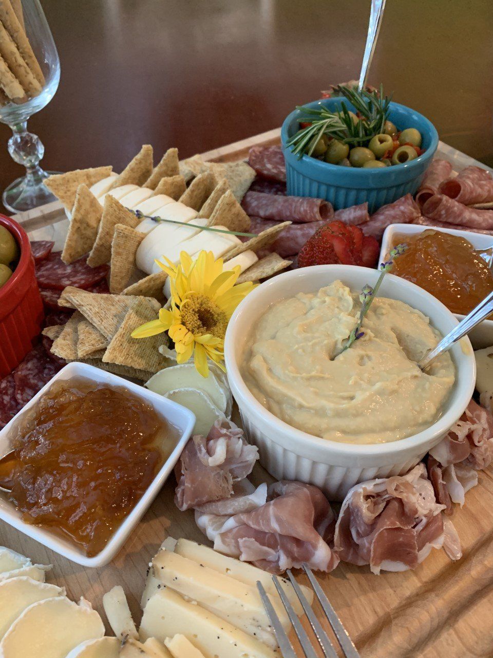 A couple of weeks ago, I had the privilege of preparing and serving five beautiful ladies dinner. As we were packing up at the end of the evening, I kept thinking about how inspirational the whole evening had been. I left feeling great! While my husband and I were setting up, the ladies started coming downstairs one by one, and they were all fabulously dressed for a special evening. As the wine and well deserved compliments started to flow, we began to get to know our clients and learned that they all worked together at a school. We started the evening off with a beautiful charcuterie board on the porch, followed by surf & turf martinis along with savory sausage & pepper skewers. As I served, I got to hear tidbits of conversation, and was blown away by the praise and admiration that they shared for each other. As the night went on, I noticed one or two ladies excuse themselves and return wearing more laid back attire; it was time for comfort and dinner. We moved to the dining area with a cucumber pineapple gazpacho then a roasted broccoli salad. The conversation, throughout dinner of sautéed chicken breast and jumbo shrimp in a lemon basil sauce over home made pasta and seared garlic green beans, continued to be uplifting and fun. The stories that I enjoyed were so refreshing, there was not any griping or negativity from these lovely people. In a job that I can only imagine is trying, frustrating and challenging, I did not hear any complaining from them. They laughed, praised their students and best of all, celebrated each other. As we served some sweet bites, I noticed some had changed into pajamas. We took our leave as they settled in and began to play some games. After we did a final once-over to make sure the kitchen was clean and all our cooking gear was packed and ready to go, the ladies thanked us again for helping make their night so wonderful and memorable. We couldn't help but feel the same way to them. Thank you ladies, can't wait to do it again.