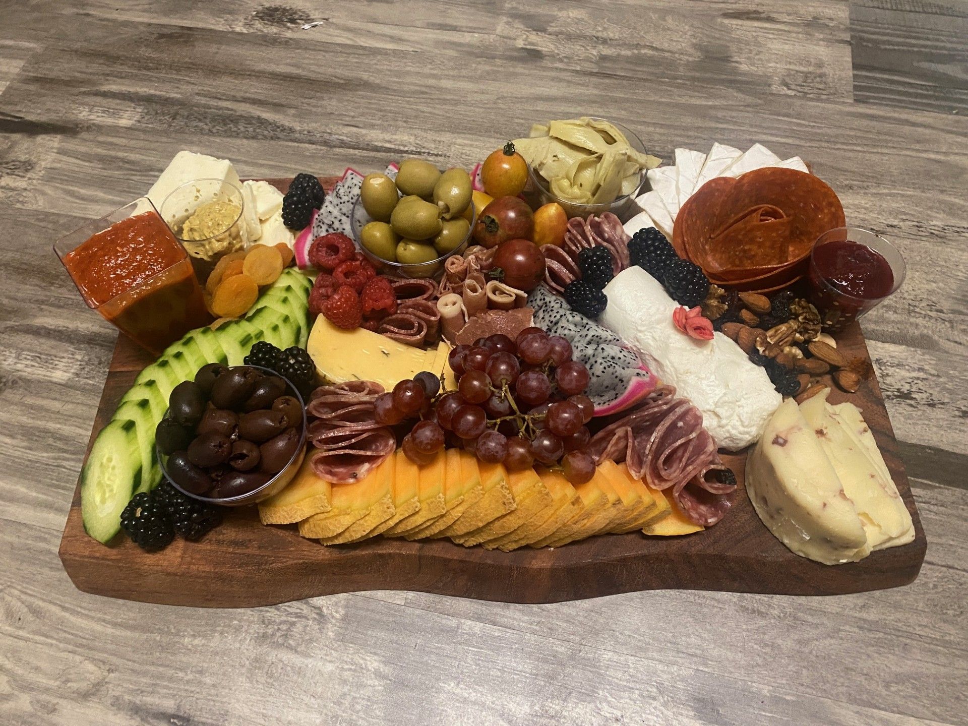 Seasonal Charcuterie to include Local Cheeses, Cured Meats, Seasonal Dips, Fresh Fruits, Dried Fruits, Fresh Veggies, Roasted Veggies, Marinated Veggies, Crackers, Breads, Nuts and so much more