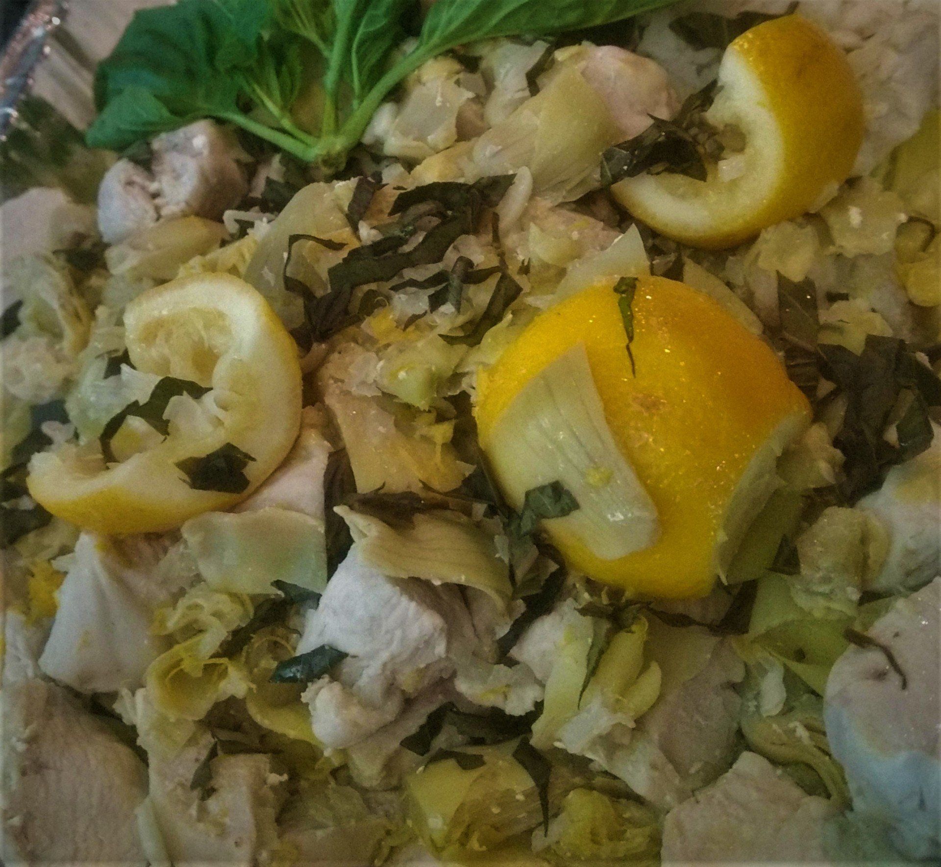 - * LEMON CHICKEN WITH ARTICHOKE HEARTS SERVED OVER STICKY RICE